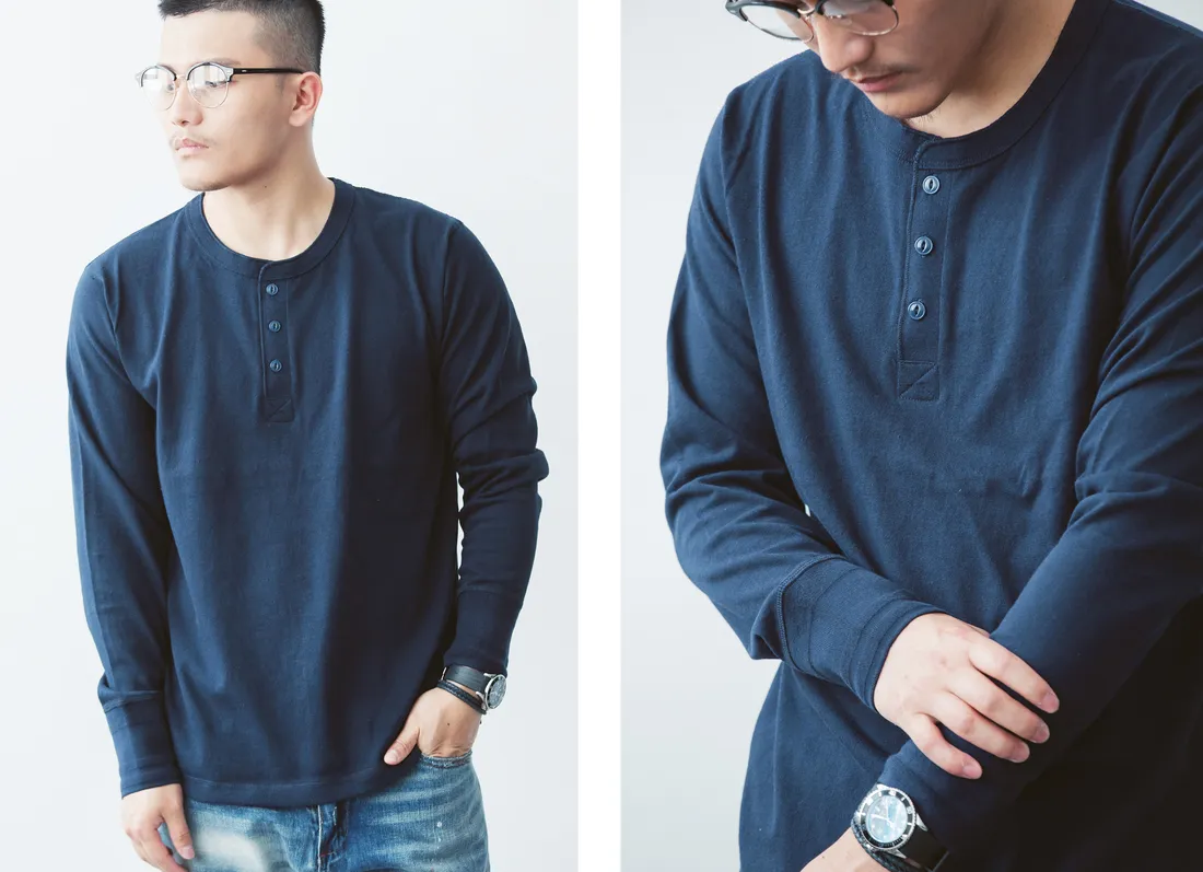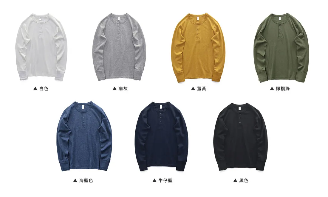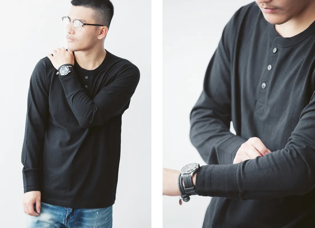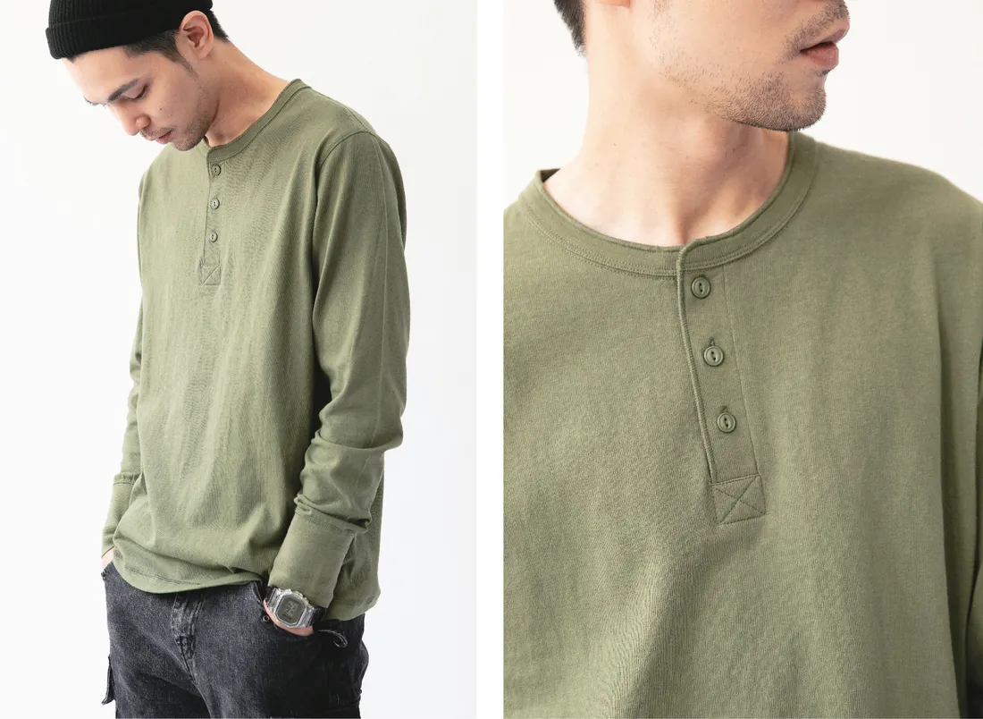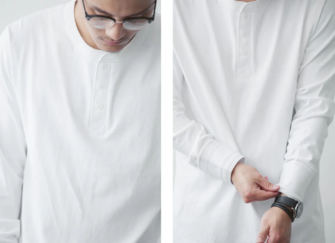 7.8oz 美式重磅 亨利領長袖T恤