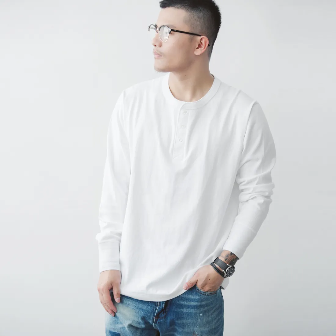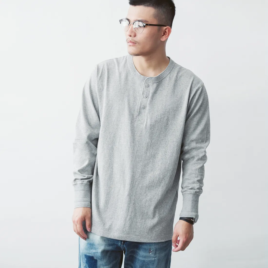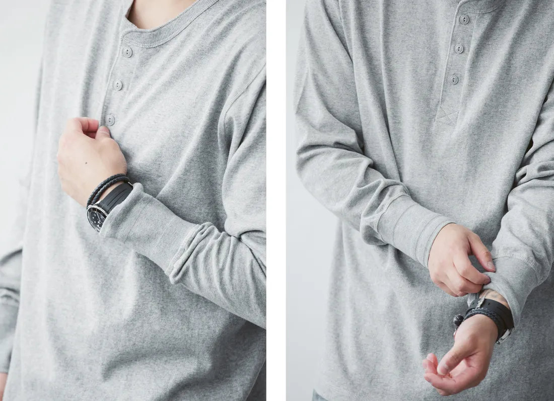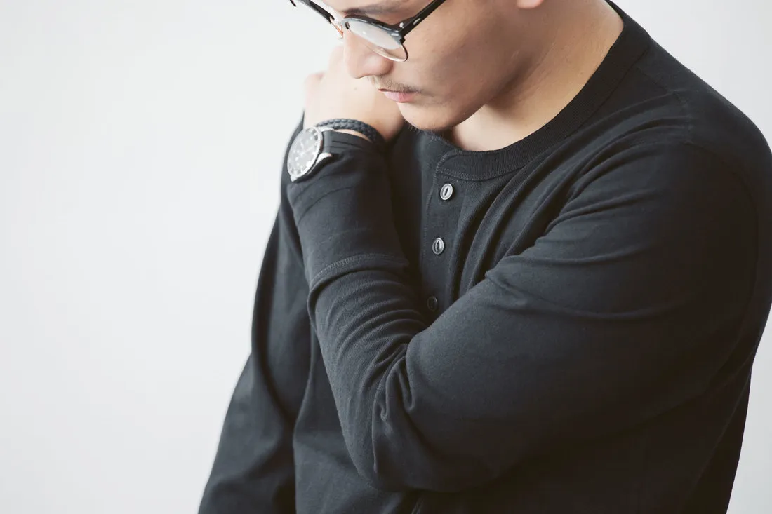 7.8oz 美式重磅 亨利領長袖T恤