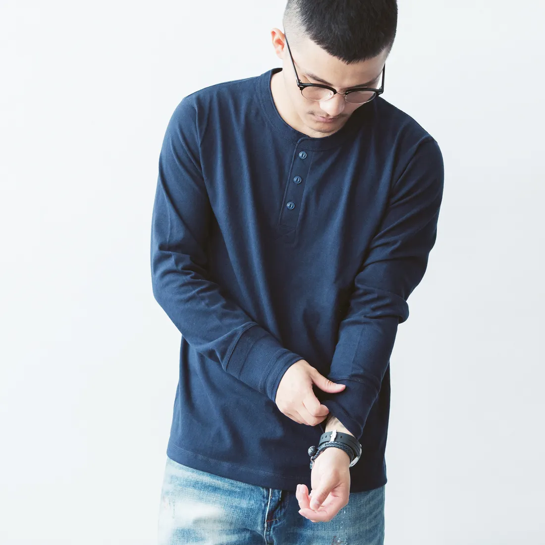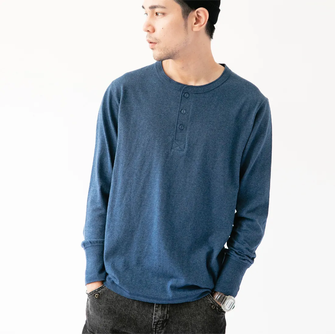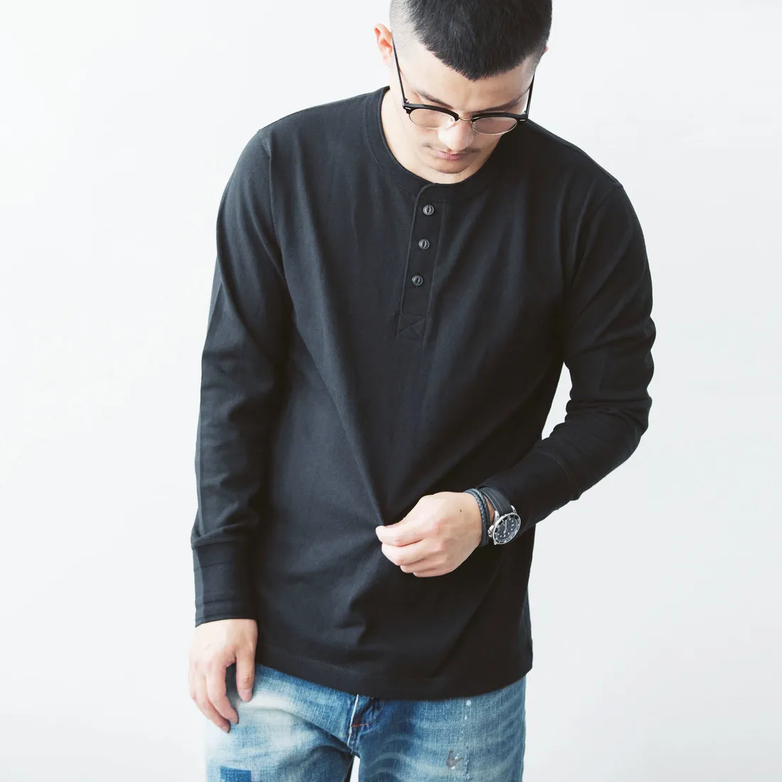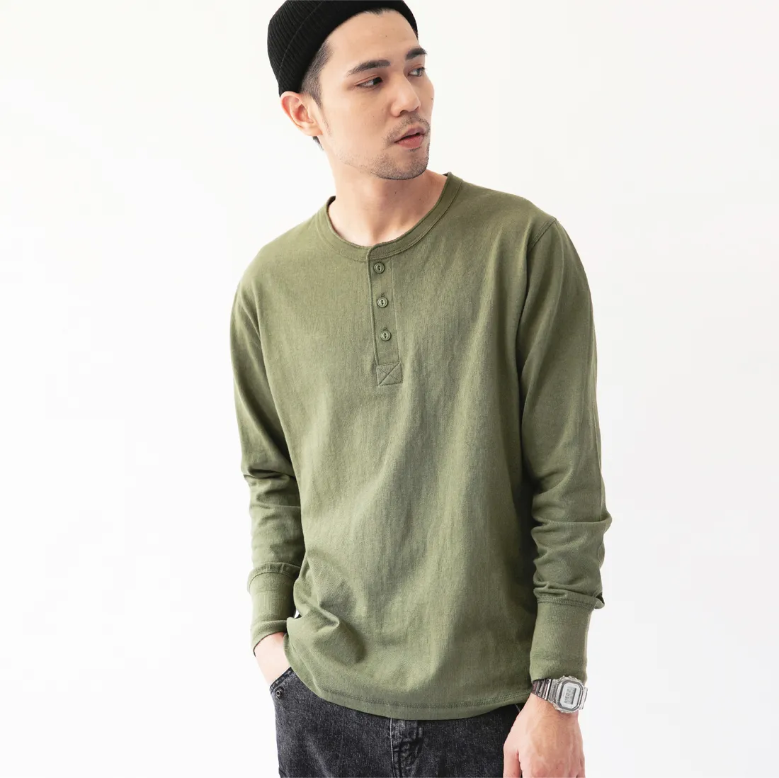 7.8oz 美式重磅 亨利領長袖T恤