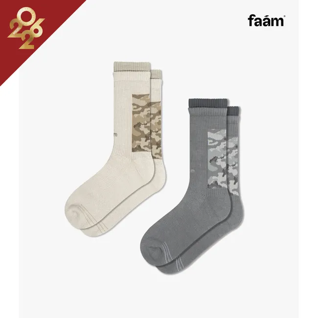 Camo Pattern Crew Socks - 雙層迷彩針織高筒襪