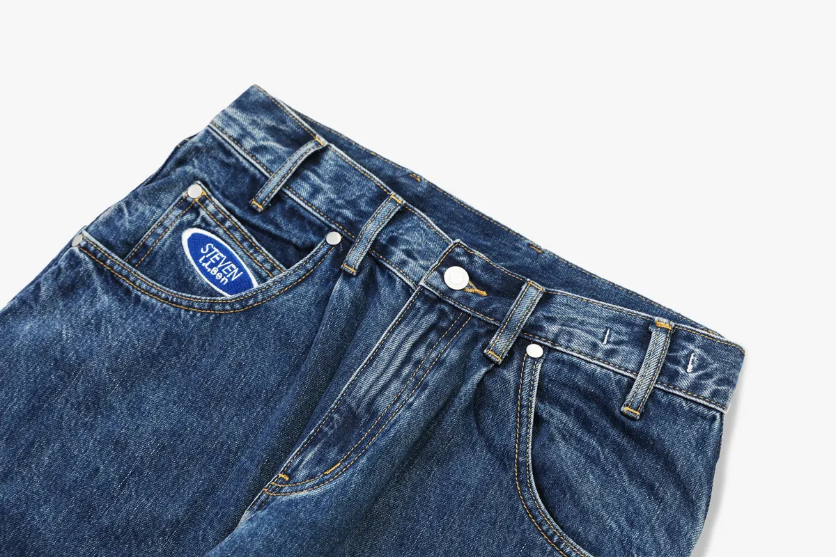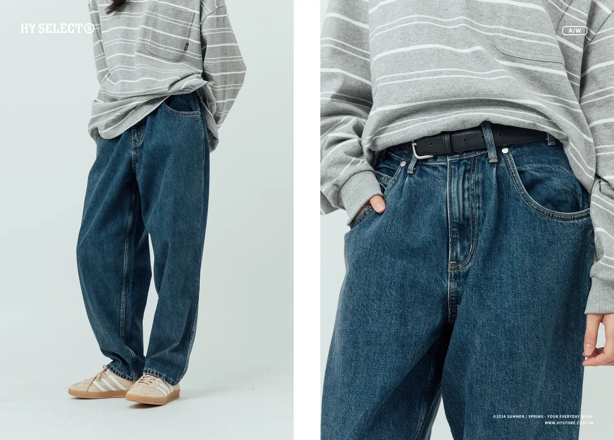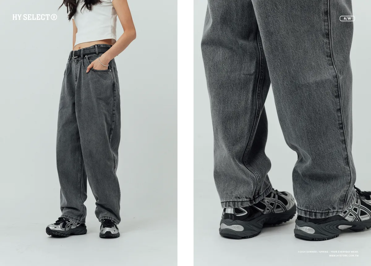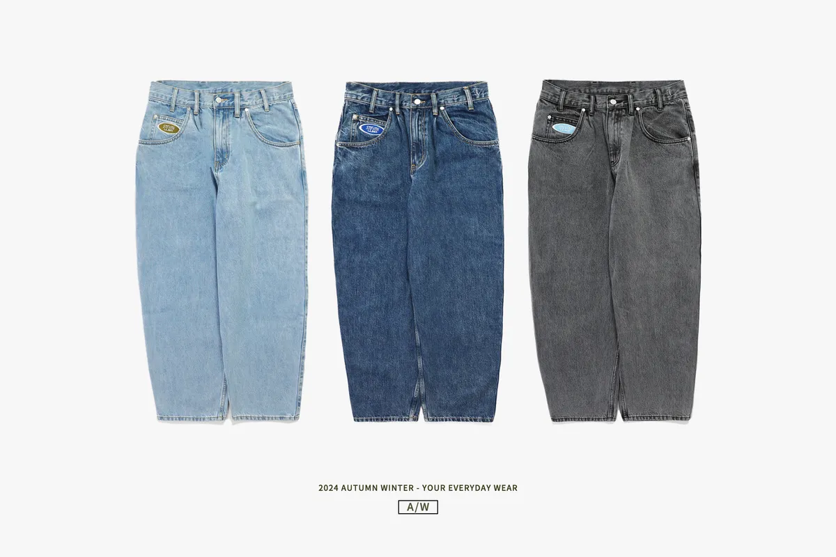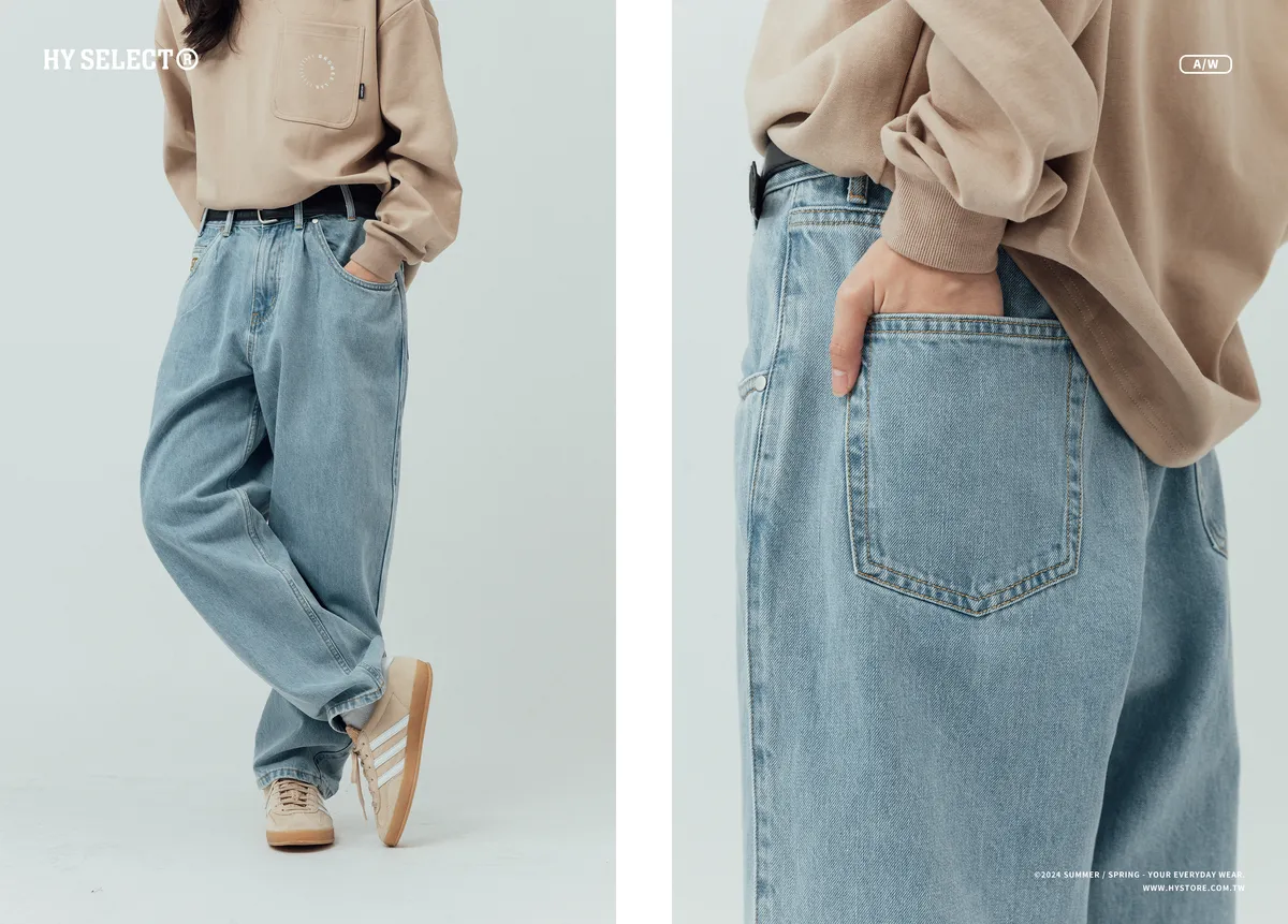 12oz 原色水洗 廓形牛仔褲