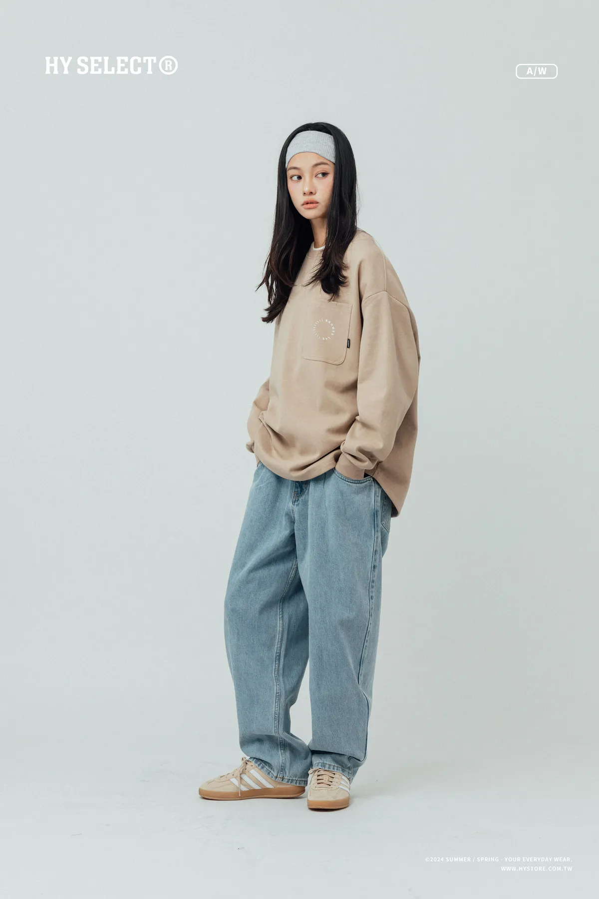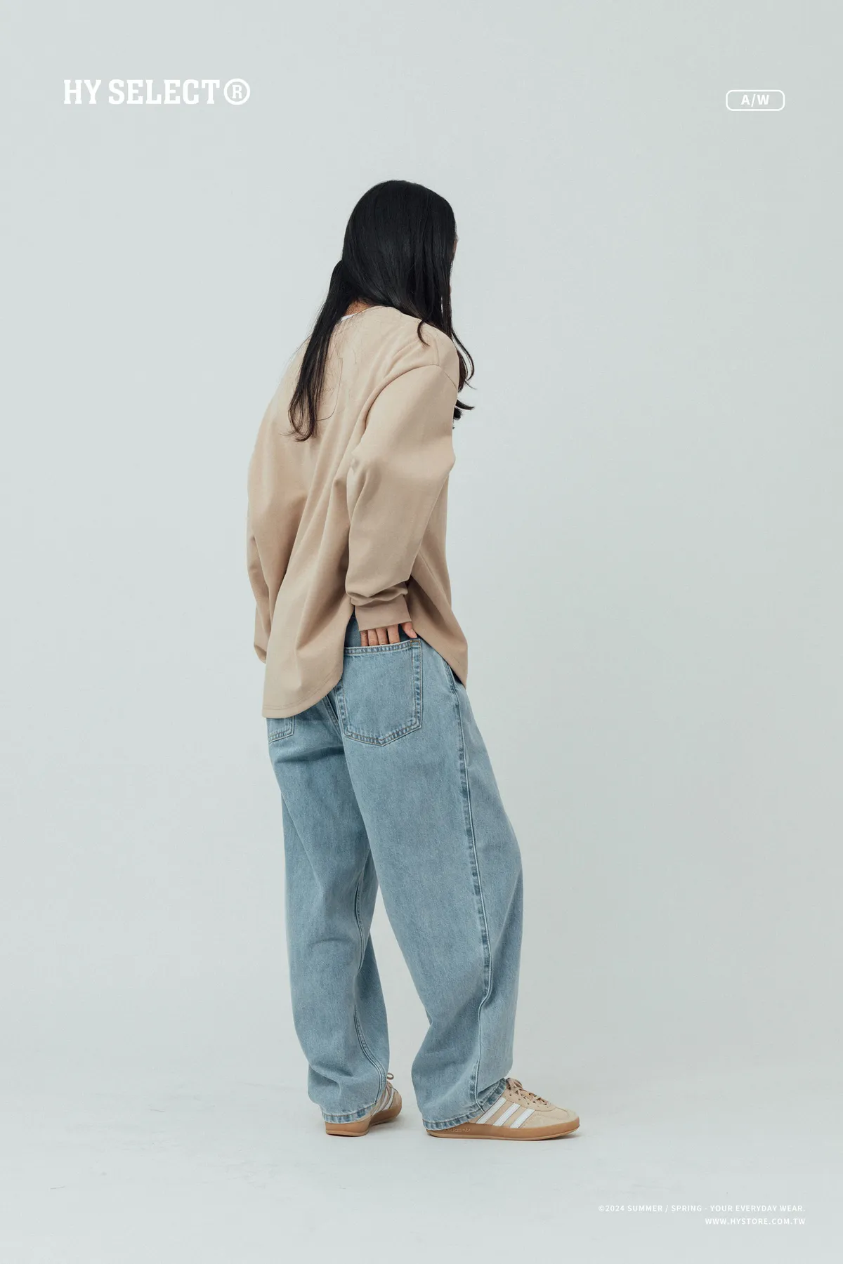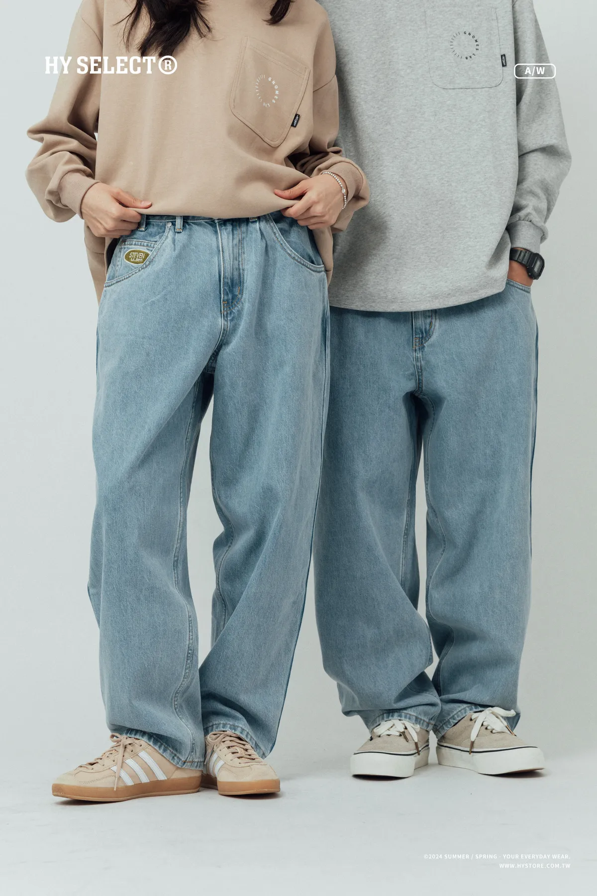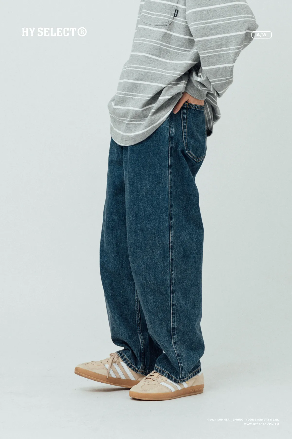 12oz 原色水洗 廓形牛仔褲
