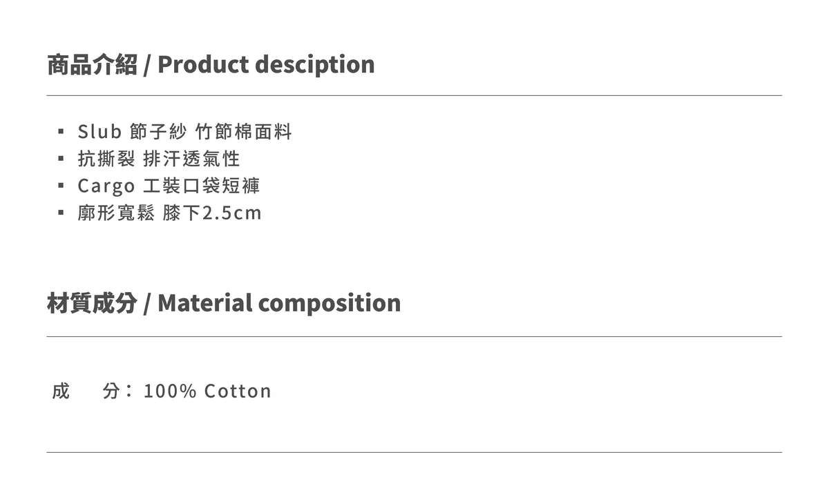 HYSELECT®MADE Slub 節子紗石染 工裝短褲