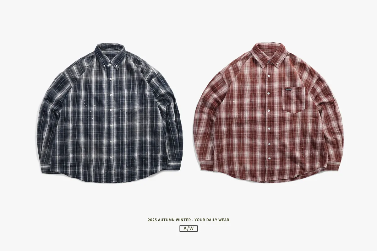 Plaid Shirt 格紋潑漆 短絨長襯衫