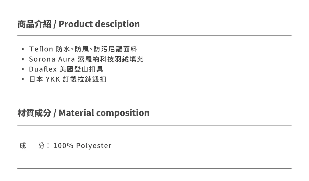 SORONA AURA Down Vest 防水機能 羽絨禦寒背心