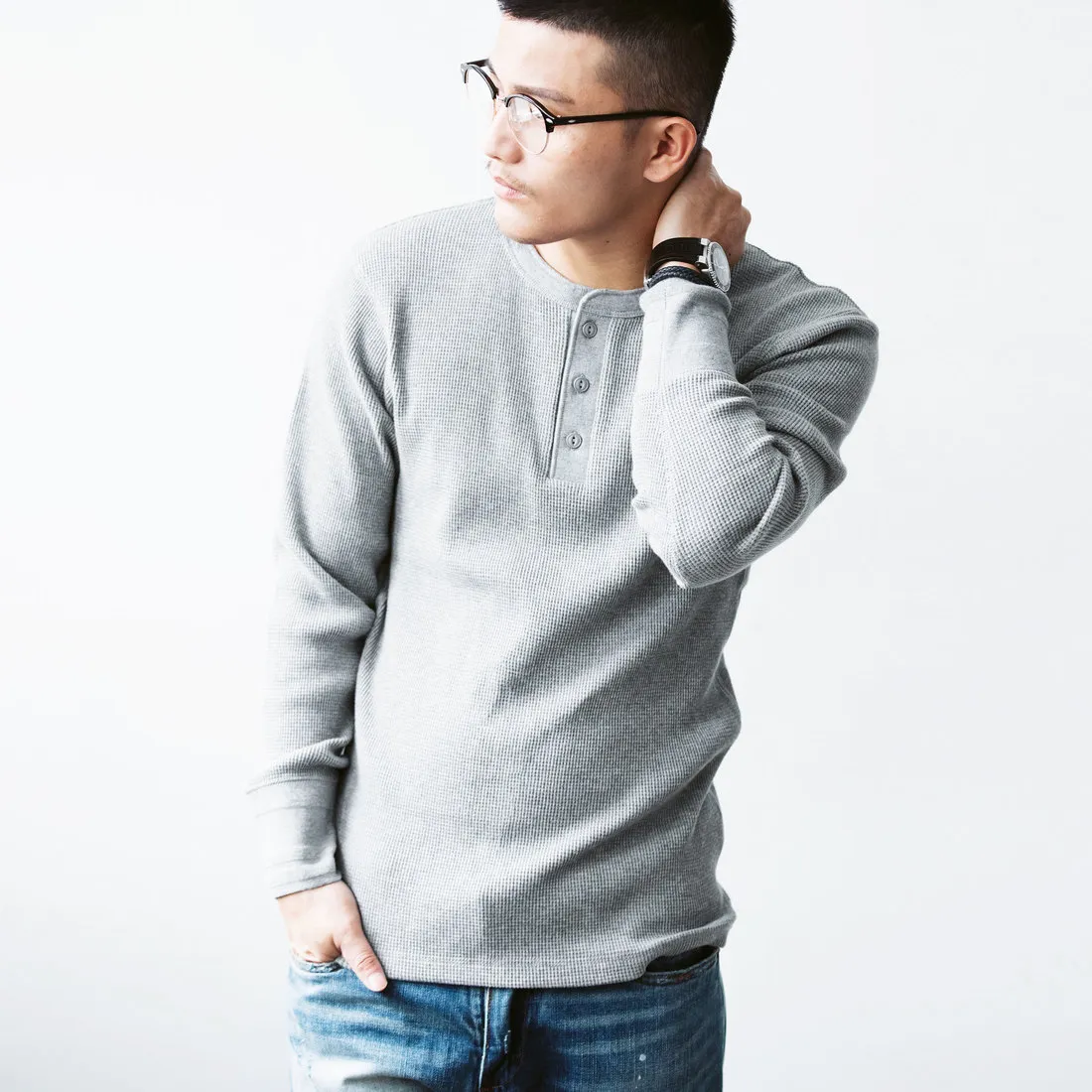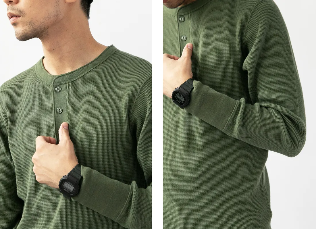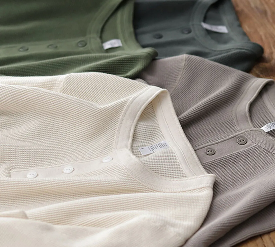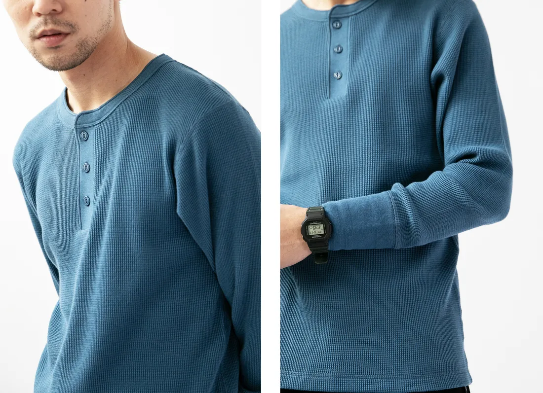 9.0oz 美式華夫格 亨利領長袖