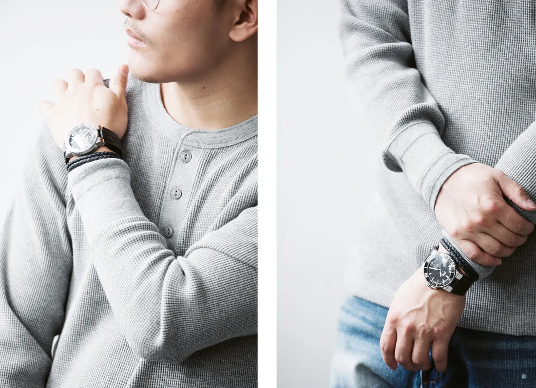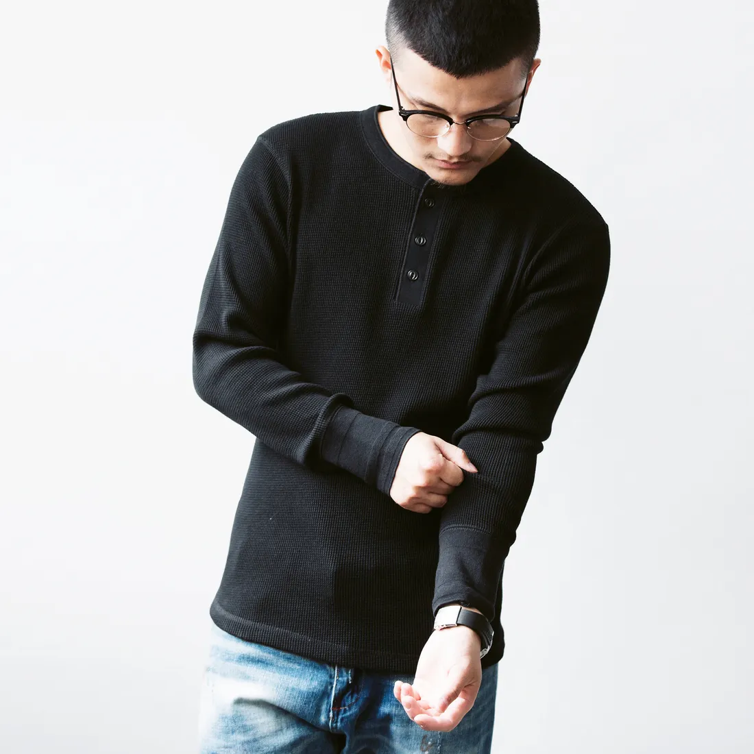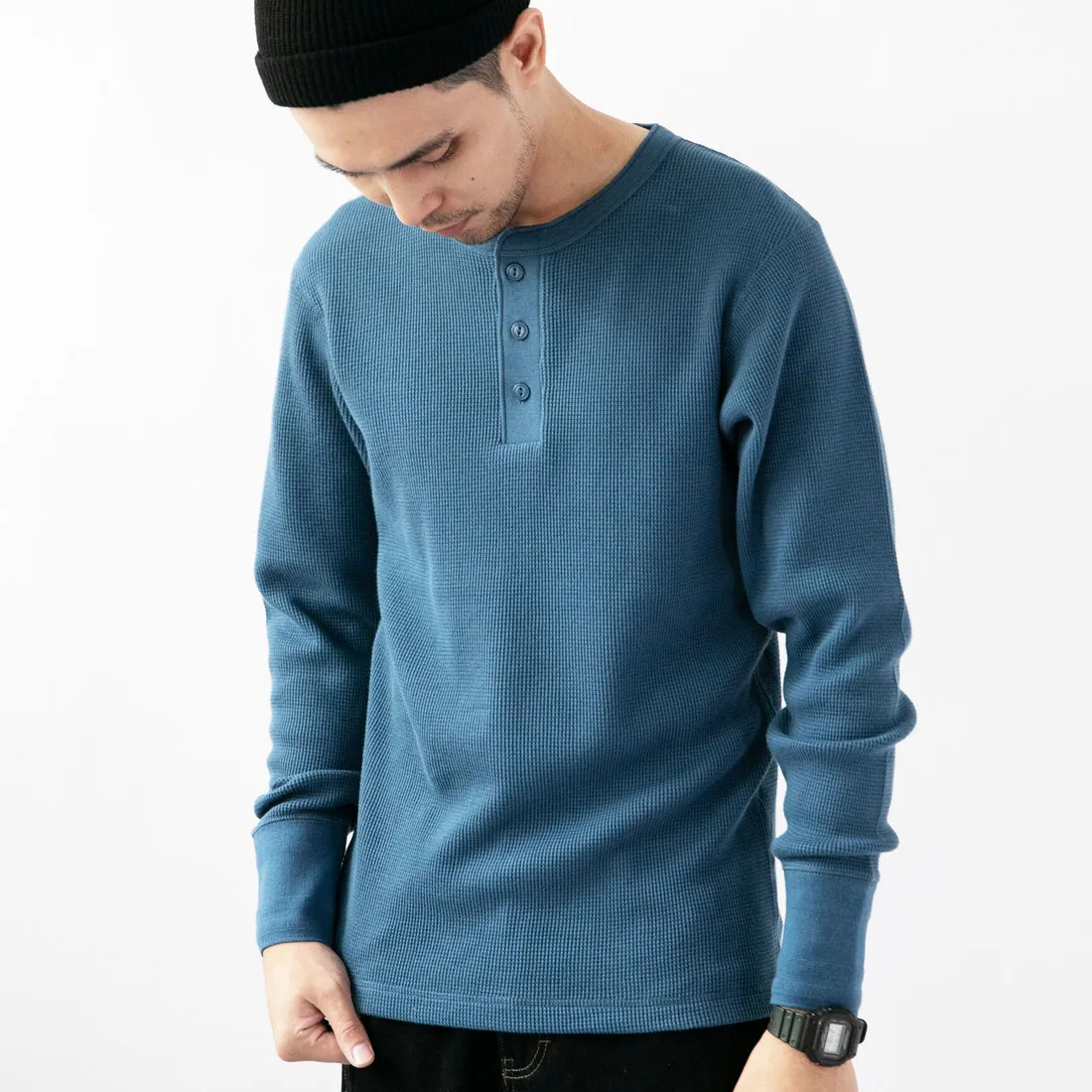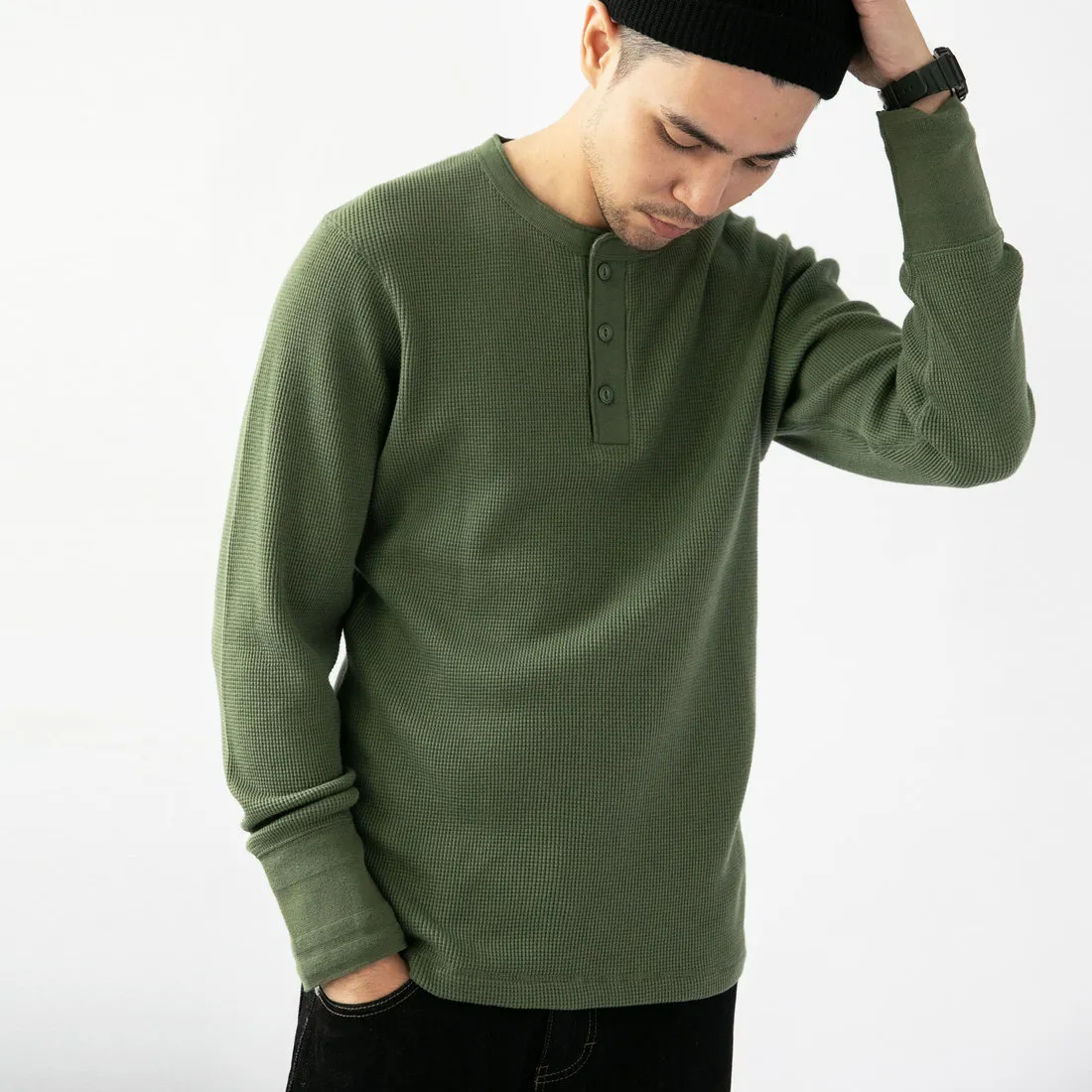 9.0oz 美式華夫格 亨利領長袖
